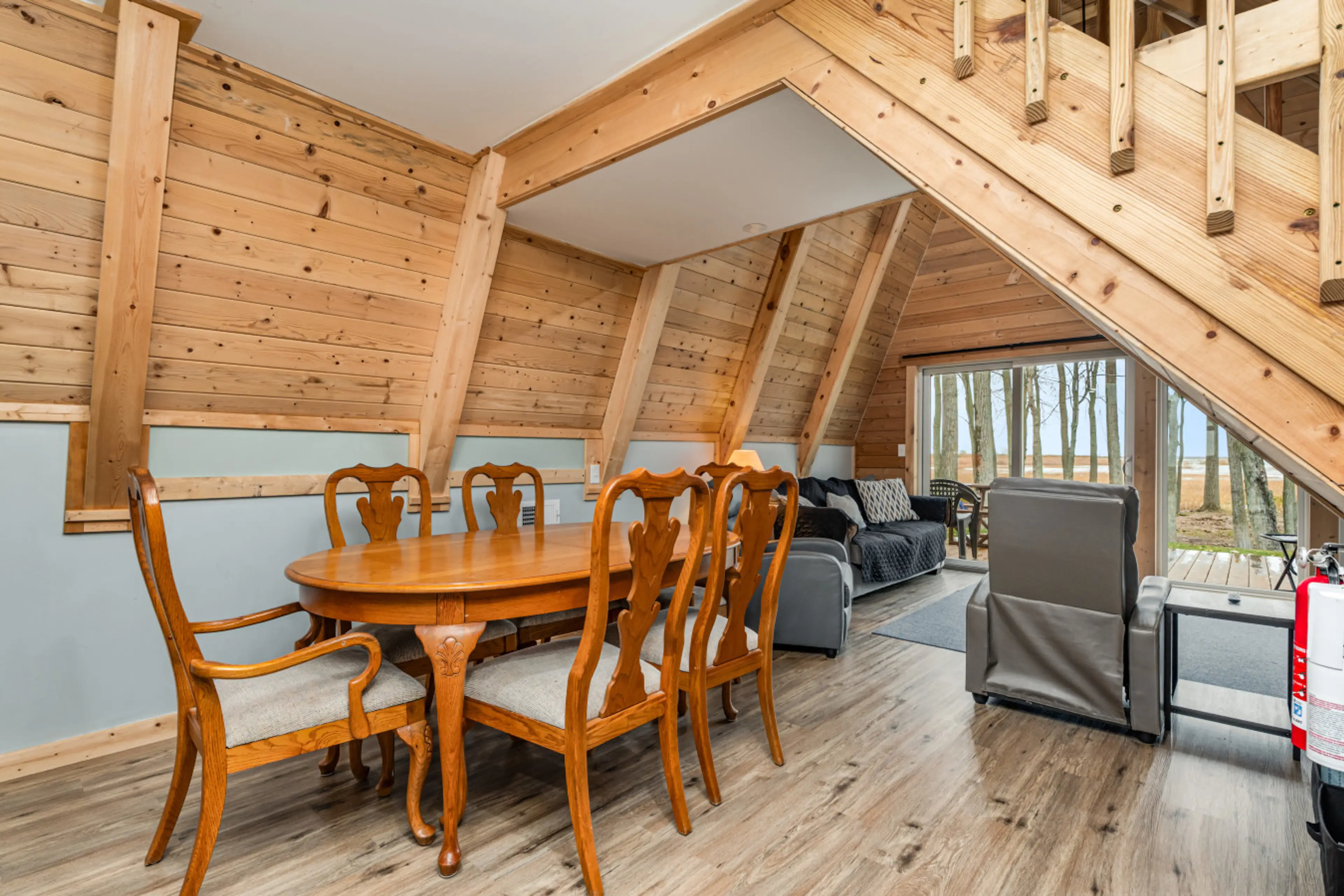 The A-frame was very clean and comfortable. As a family with 4 kids, we appreciated that there were many beds. We would happily stay here again.